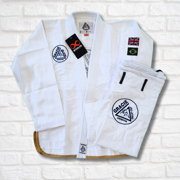 The Gracie Swindon / Braus Flags Adults GI is constructed with 100% ultra soft cotton and 450gsm Pearl Weave fabric for lightweight yet durable wear. Additional features include rounded side cut, triple stitching on critical seams, direct embroidery, and double reinforced stitches to ensure superior quality and comfort.